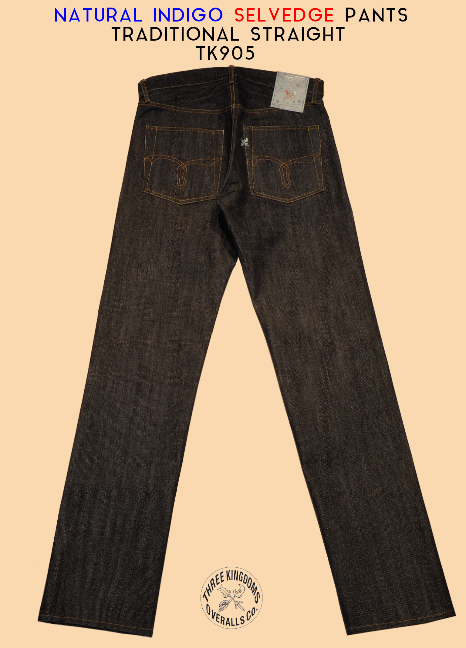 TK905 TRADITIONAL STRAIGHT NATURAL INDIGO SELVEDGE DENIM PANTS